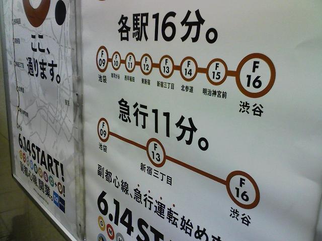 今日のPicture Of the Day。来月14日に開業が迫った地下鉄副都心線の広告。渋谷−新宿3丁目を5分で。東横直通運転がはじまると、セントラル駅−新宿3丁目が20分(乗り換え待ち2分含む)。スゲー!永住検討も!