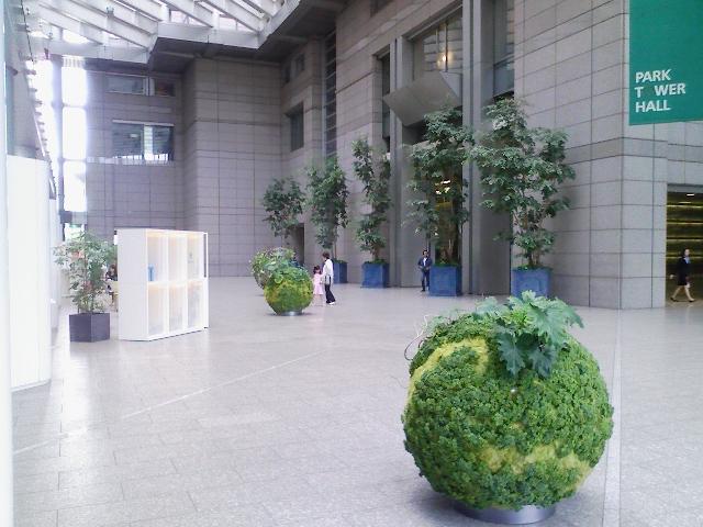 今回は西のコース。薄〜い照明をゲットするためにOZONEへ。エルタワーから10分おきに出ている無料の直通バスに乗り込む。このバスはほんとに使える!新宿中央公園とかに行くときにも使えるね。OZONEのエントランスではエコを意識した作品が。コンランショップもエコ全開だった。