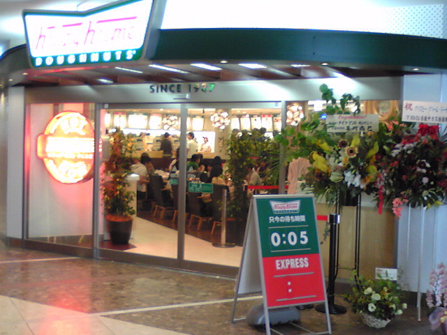 副都心線開業に合わせてオープンしたクリスピー・クリーム・ドーナツの渋谷シネタワー店。渋谷にきたら食べないわけには行かないね。ということでデビューしてきた。民放テレビが2社ぐらい来てる中、渋谷店の目玉である『ドーナツシアター』。ドーナツが油の海をぷかぷか浮いてて、かなりカワイイ感じに。次々に出来ていくドーナツ達。食べちゃいたいぐらいカワイイっていうのはこういうのを言うんですねぇ〜。5分ぐらいの待ち時間に揚げたてドーナツのサービスがっ。柔らかっ!ドーナツの概念変わりましたヨ!思わず、昨年の『じゃんぼ』での焼肉以来の概念変更を宣言。またひとつ、キラーコンテンツが渋谷に現れたなぁ〜。