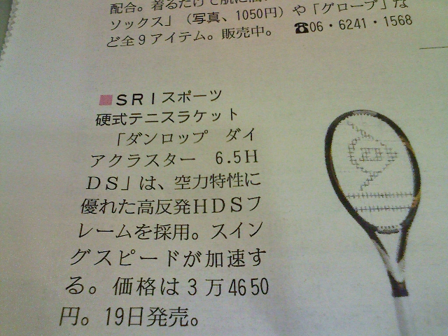 AD関東支部の開催が決まりましたよ〜♪4ヶ月ぶり。個人としては、沖縄で行けなかったのでそれ以上ぶりですね。来月9日16時から東京・調布市にて。楽しみ〜。写真は、フジサンケイビジネスアイで紹介されていたテニスラケット。ヘッドスピードが出るらしい。明日発売。買うのか?買っちゃうのか??
