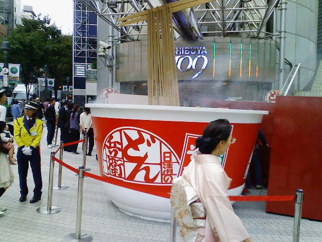 すごいいい絵が取れた!マルキュー前でどん兵衛&和服。もくもく湯気を揚げているのを見ると、食べたくなりますな。そーいえば、カップヌードルリフィルも再び流通が強化されたみたいだし、ラーメンブームがまたキそう。